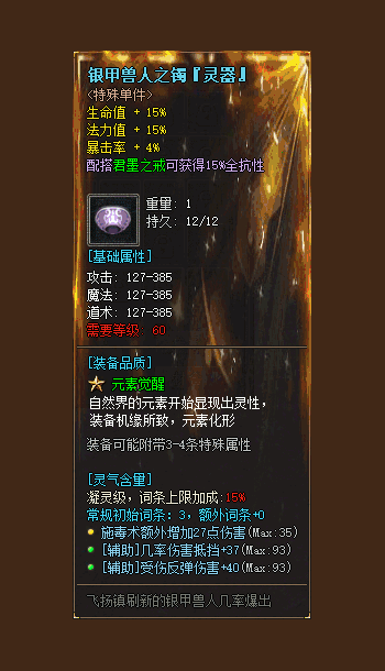 元素·专属升星——专属装备附带极品元素